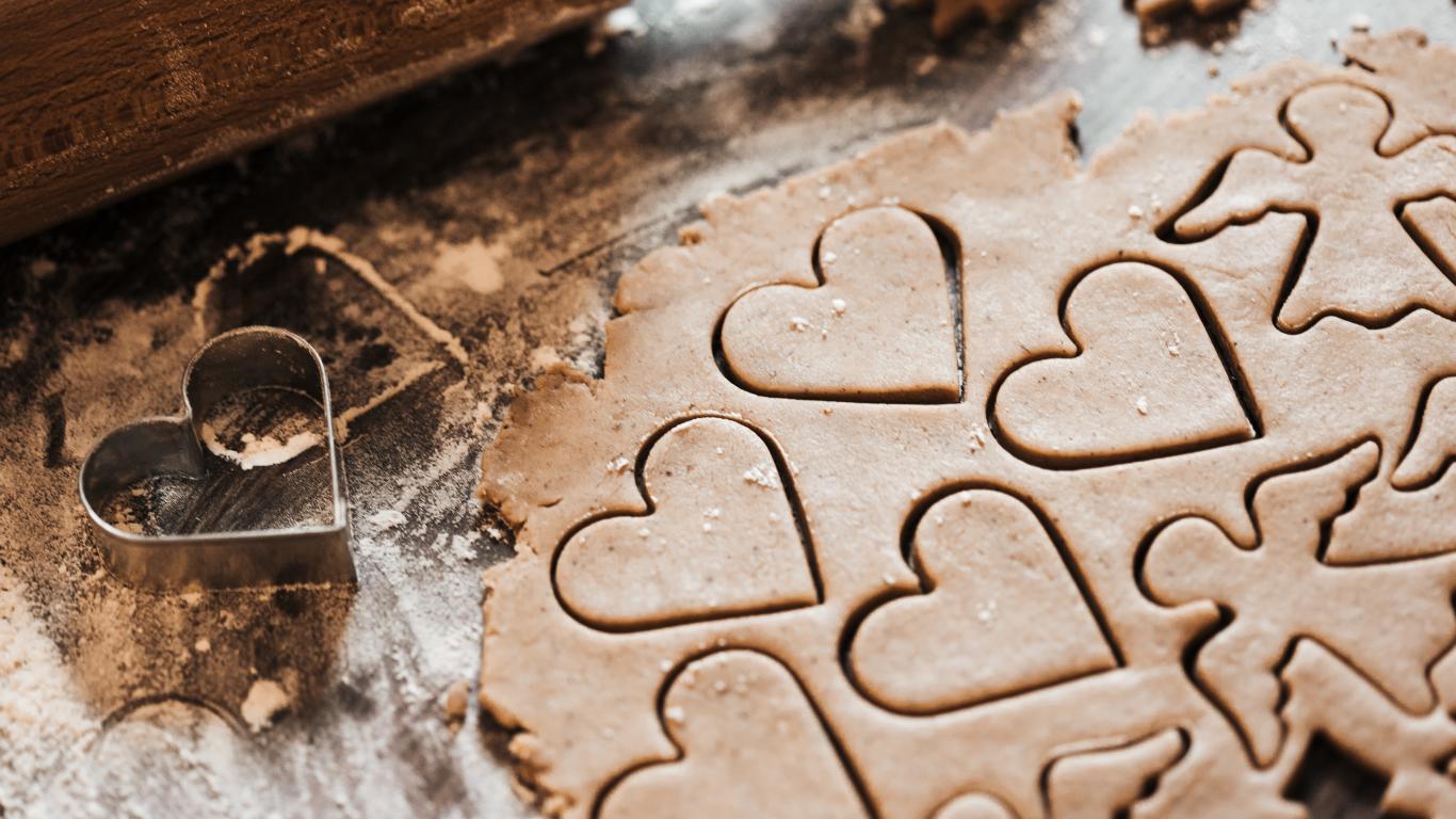 Wallpaper Raw cookies in the shape of angels and hearts.