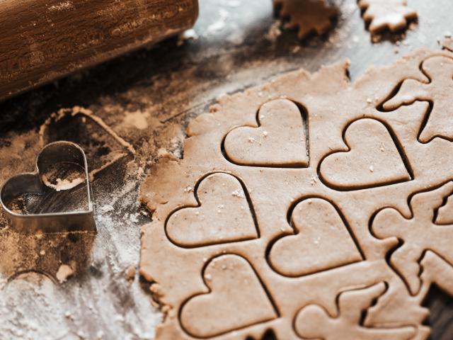 Wallpaper Raw cookies in the shape of angels and hearts.