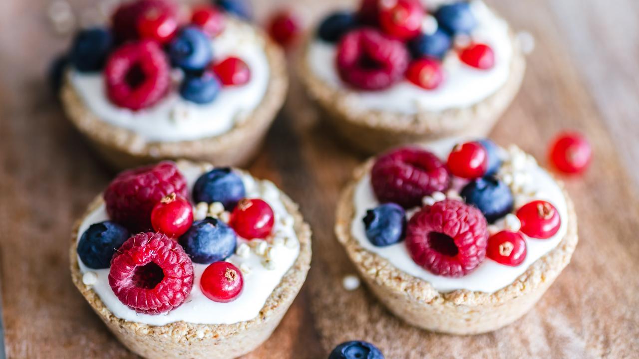 Wallpaper Cakes with cream and berries on a table close-up