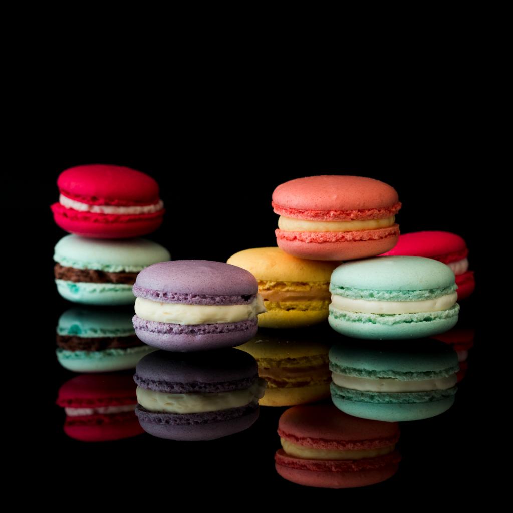 Wallpaper Colorful macaroon dessert on a black background
