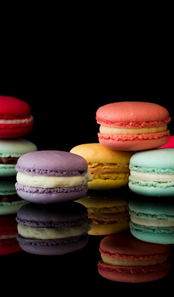 Wallpaper Colorful macaroon dessert on a black background