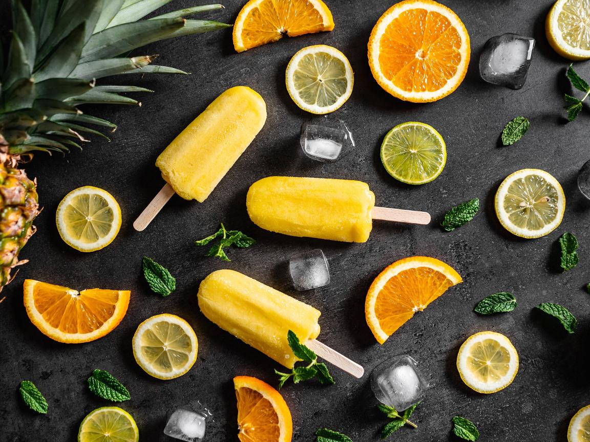 Wallpaper Popsicles on a gray background with citrus and lemon