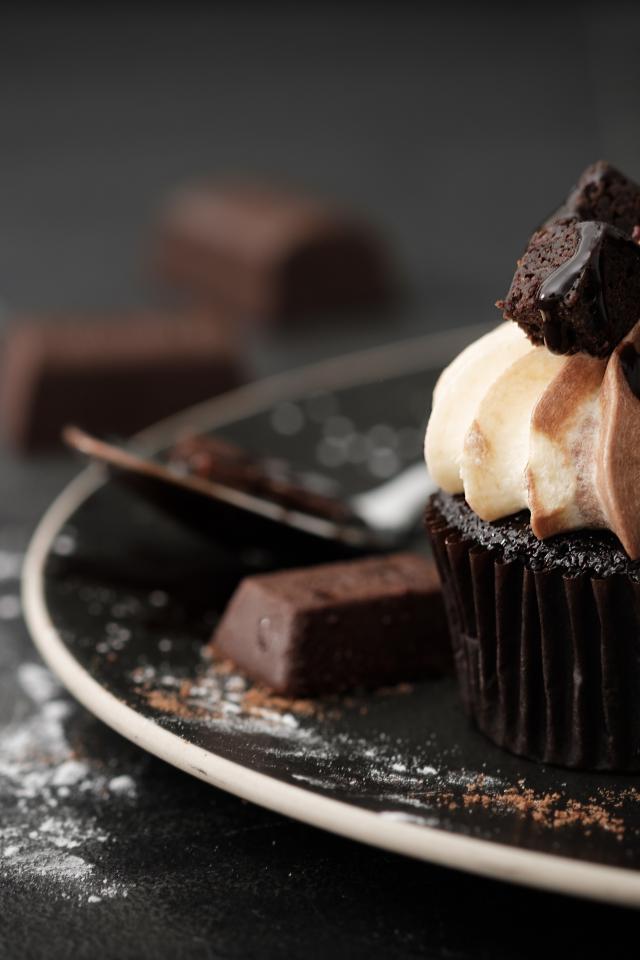 Wallpaper Chocolate cream with cream on a plate with grapes