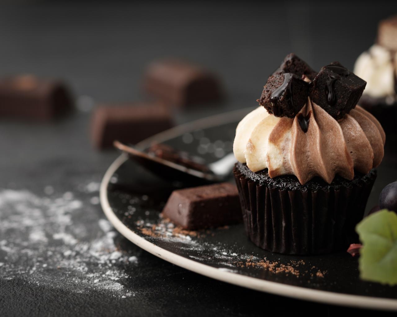 Wallpaper Chocolate cream with cream on a plate with grapes