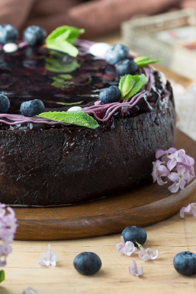 Wallpaper Pie with jam and blueberries on a table with lilacs
