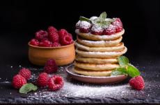 Wallpaper Delicious sweet eclairs with icing sugar on a dish with berries