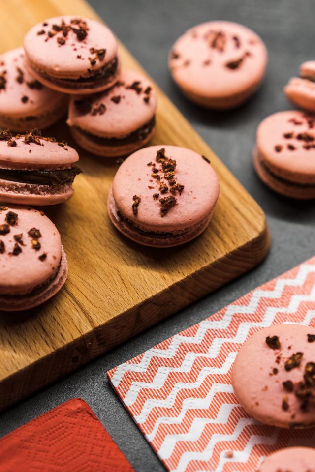 Wallpaper Macaroon dessert on a wooden board