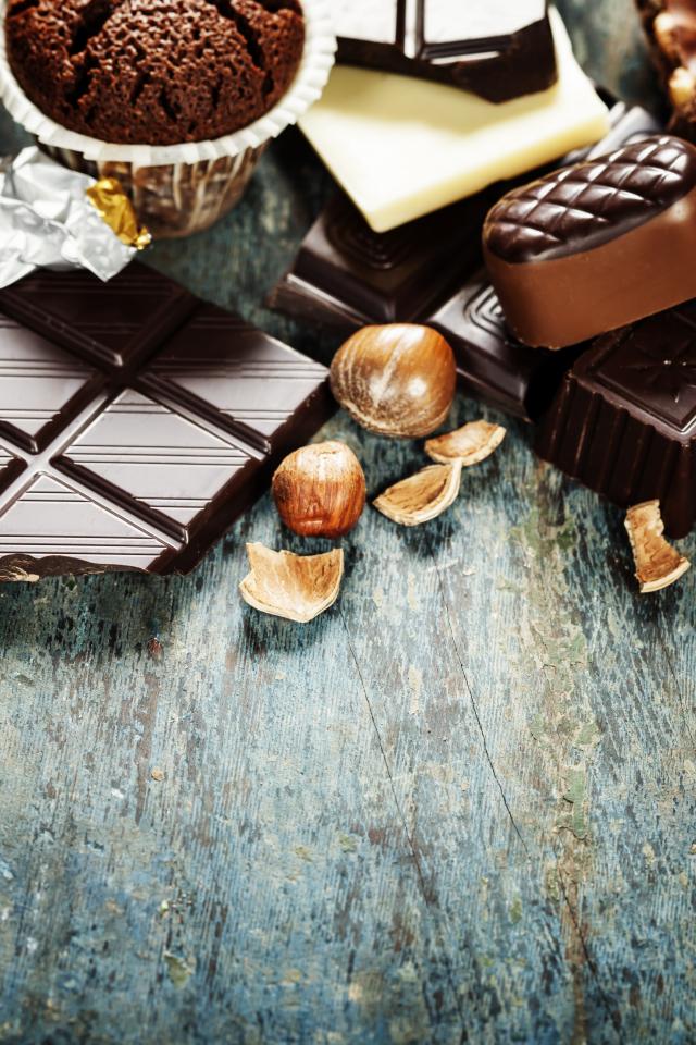 Wallpaper Chocolate on a table with nuts, muffins and sweets.
