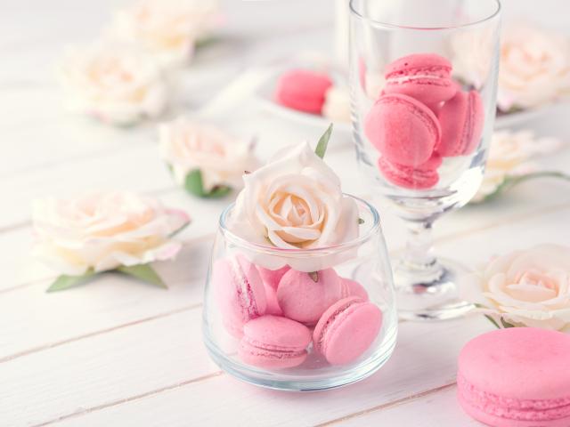 Wallpaper Pink pasta dessert in a vase with a rose