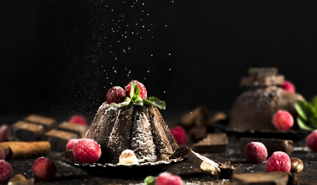 Wallpaper Chocolate dessert on a table with cranberries