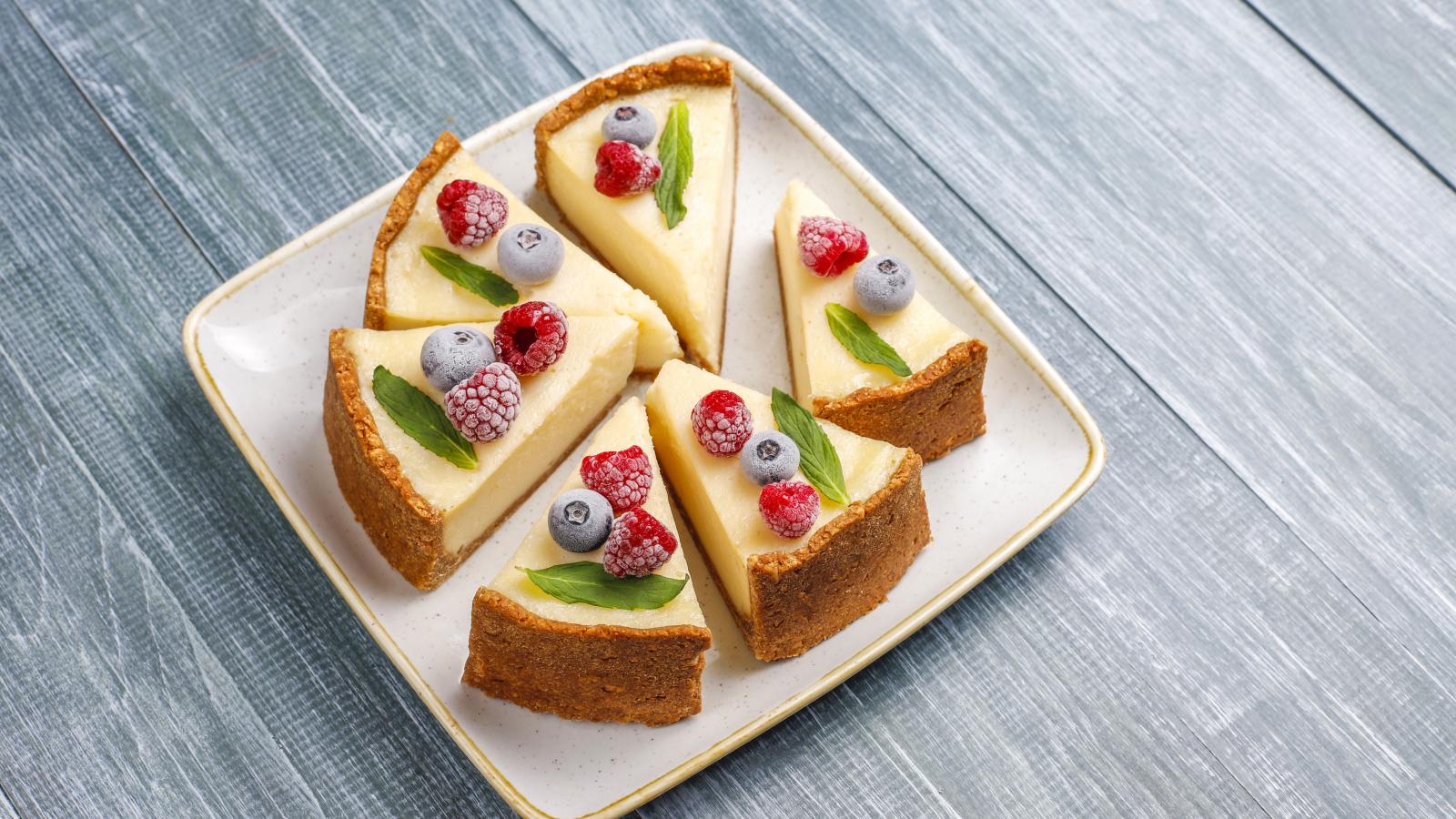 Wallpaper Appetizing cheesecake with berries diced on a plate