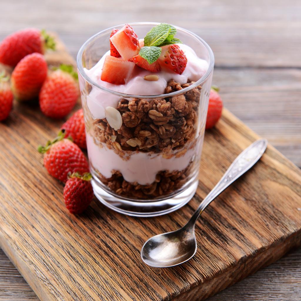 Wallpaper Oatmeal in a glass with yogurt and strawberries