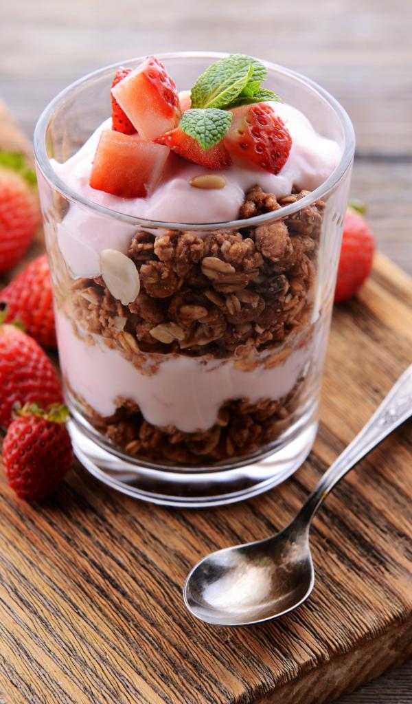 Wallpaper Oatmeal in a glass with yogurt and strawberries