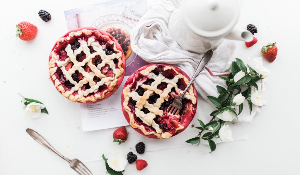 Wallpaper Dessert with berries on a table with tea