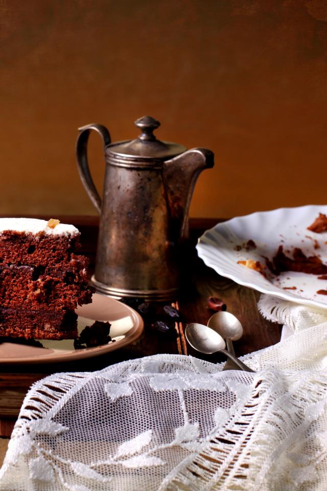 Wallpaper A piece of cake on a plate on a table with tea