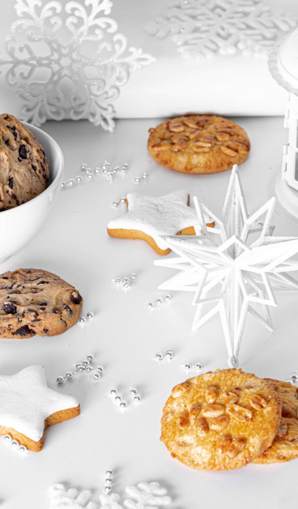 Wallpaper Oatmeal cookies on a table with a lantern and beads