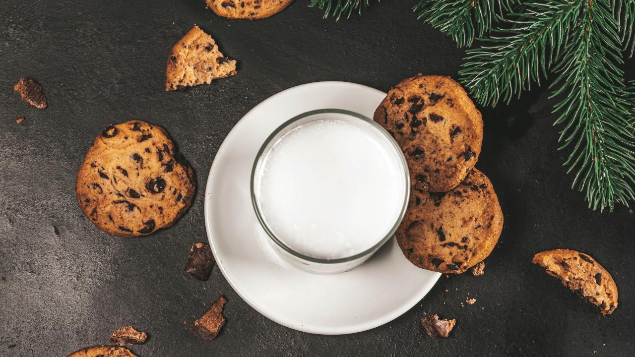 Wallpaper Cookies with chocolate on a table with a glass of milk