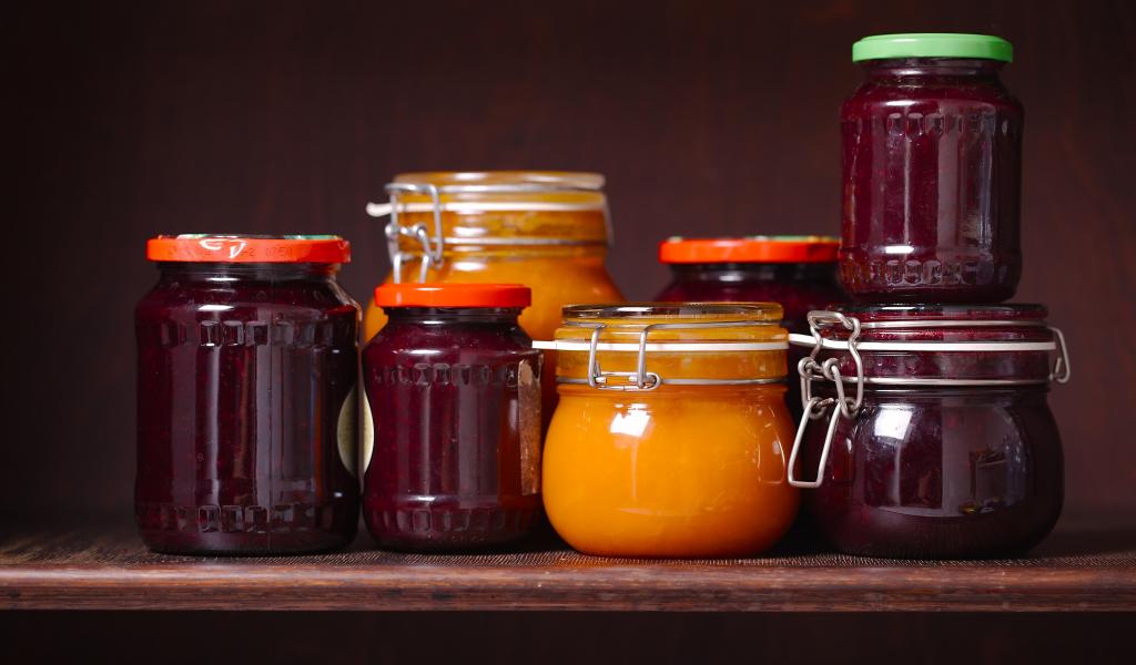 Wallpaper A lot of jam preserves for the winter on the table