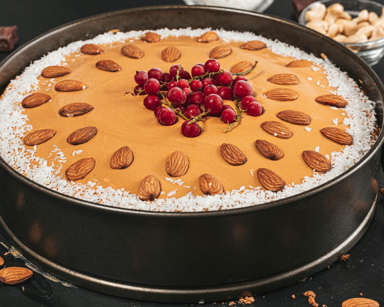 Wallpaper Cake with almonds, coconut and red currants