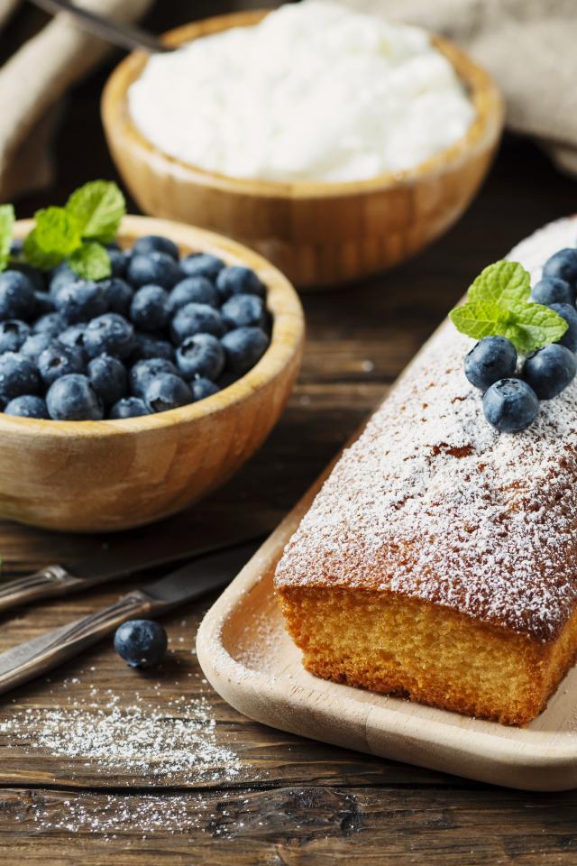 Wallpaper Fresh muffin with icing sugar and blueberries