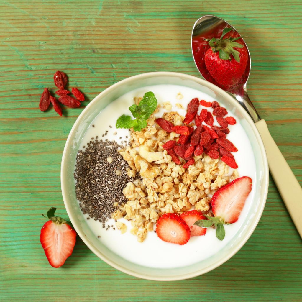 Wallpaper Dessert with dried fruits and strawberries on the table