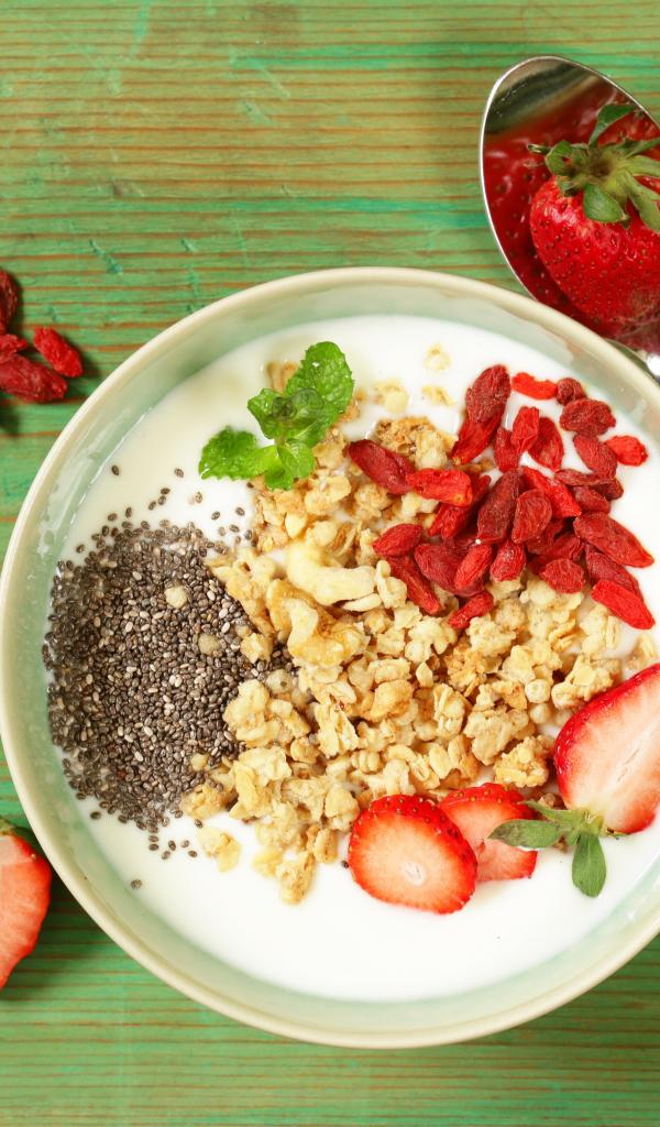 Wallpaper Dessert with dried fruits and strawberries on the table