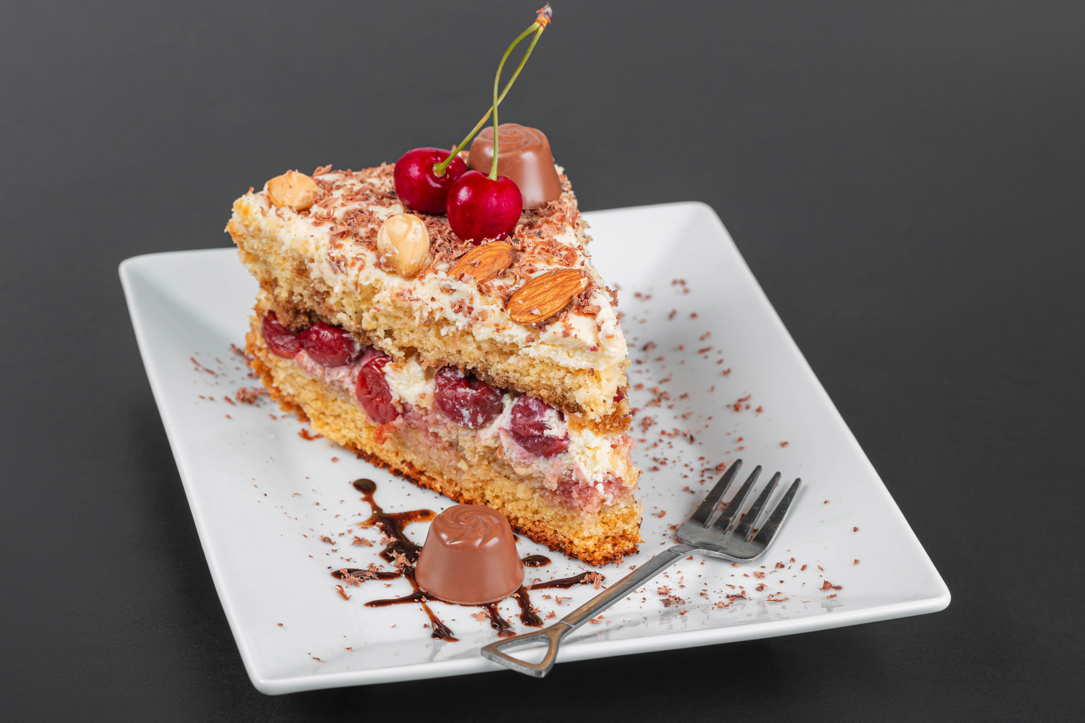Wallpaper Piece of cake with cherries and almonds