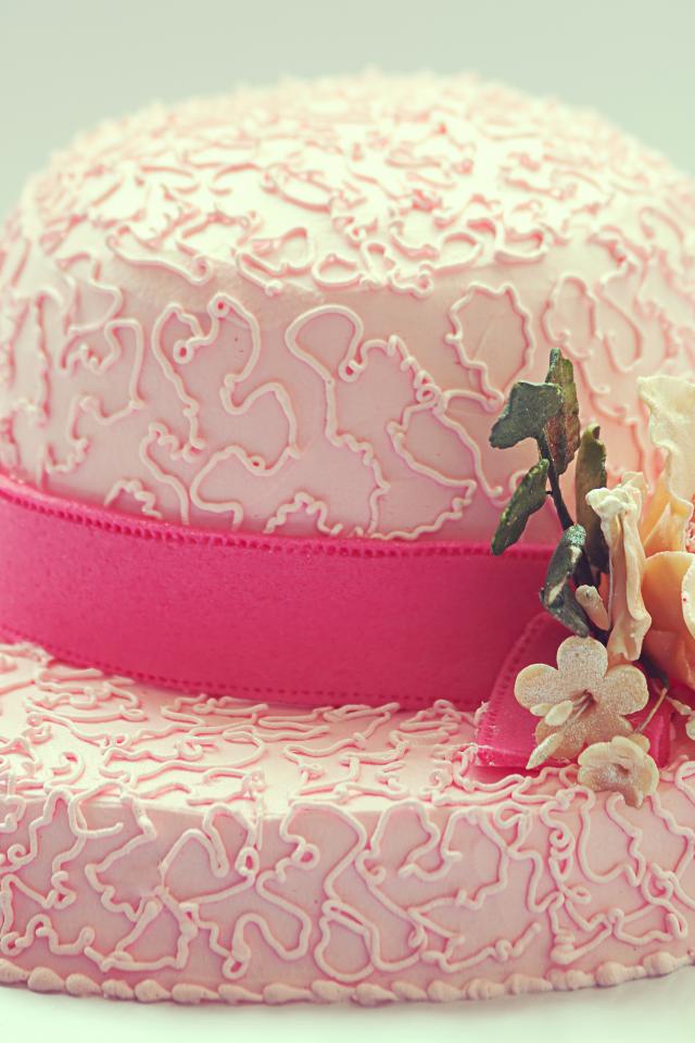 Wallpaper Pink cake in the form of a hat on the table
