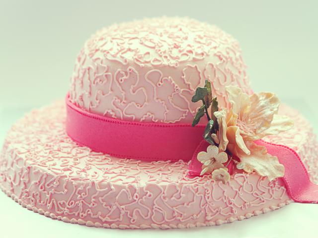Wallpaper Pink cake in the form of a hat on the table