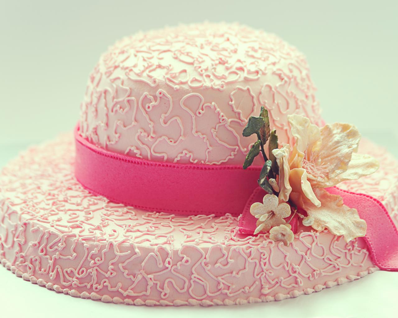 Wallpaper Pink cake in the form of a hat on the table
