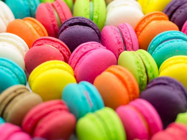 Wallpaper Many multicolored macaroon dessert close up