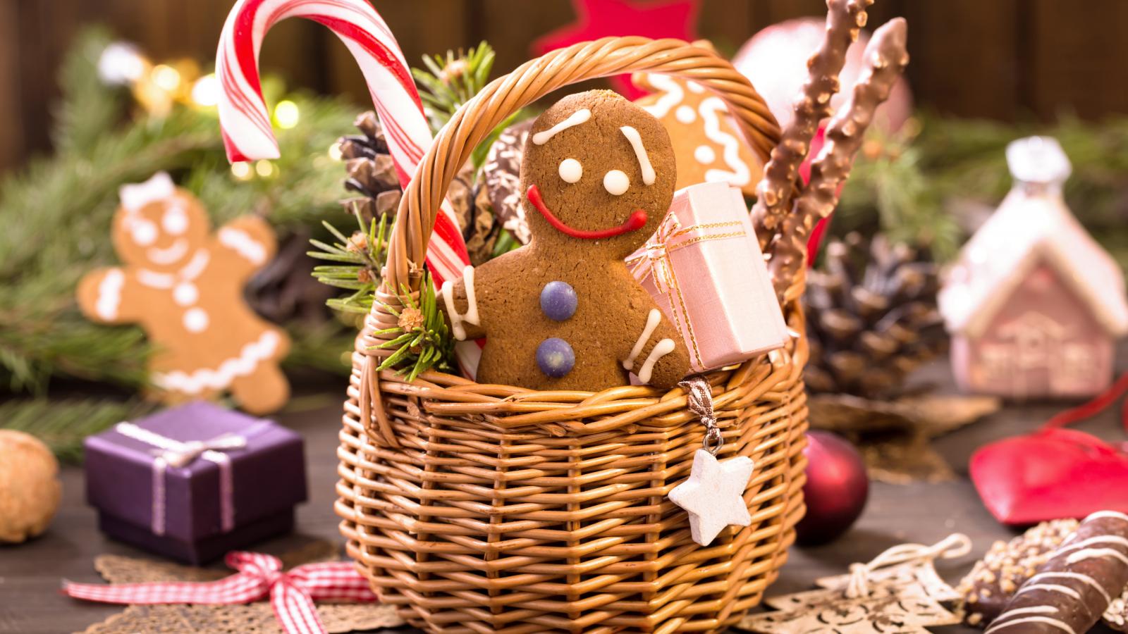 Wallpaper Beautiful Christmas cookies in a basket with sweets