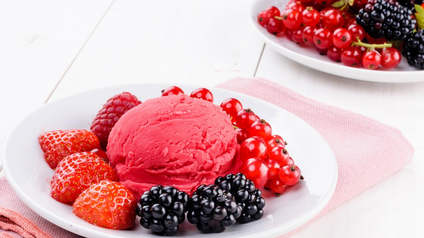 Wallpaper Ball of popsicles with berries on a white plate