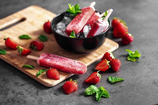 Wallpaper Berry ice cream with strawberries and mint on the table