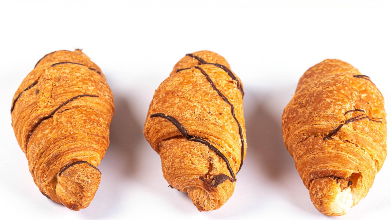 Wallpaper Three croissants with chocolate on a gray background