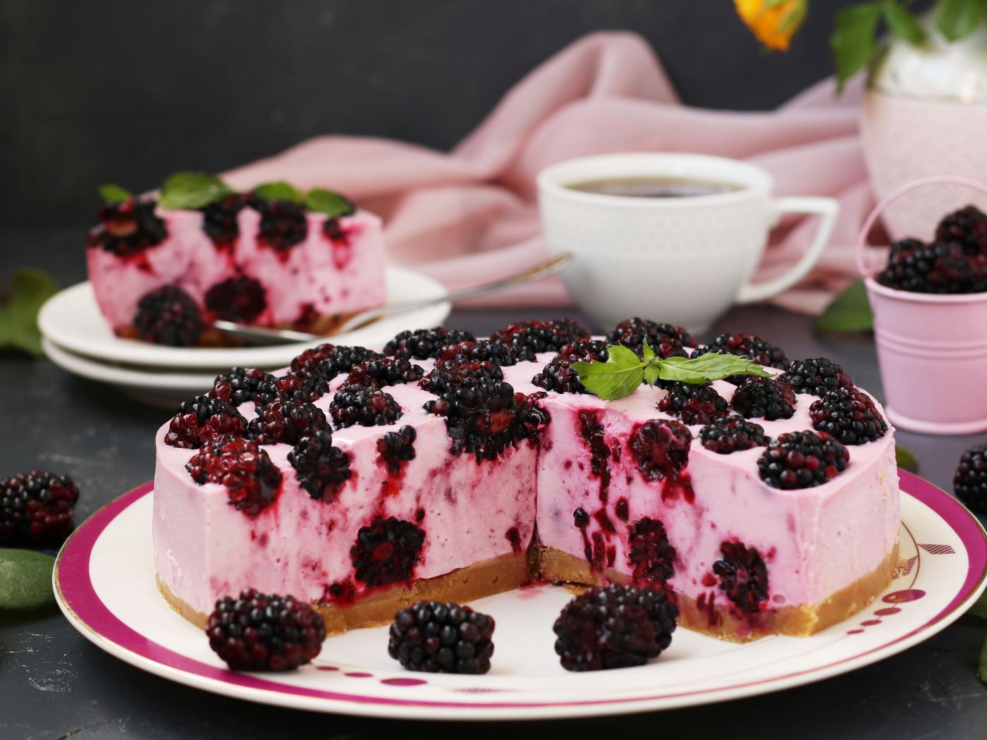 Wallpaper Cheesecake with blackberries on a large plate