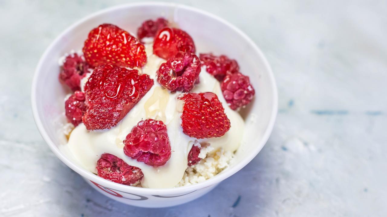 Wallpaper Cottage cheese with sour cream and raspberries