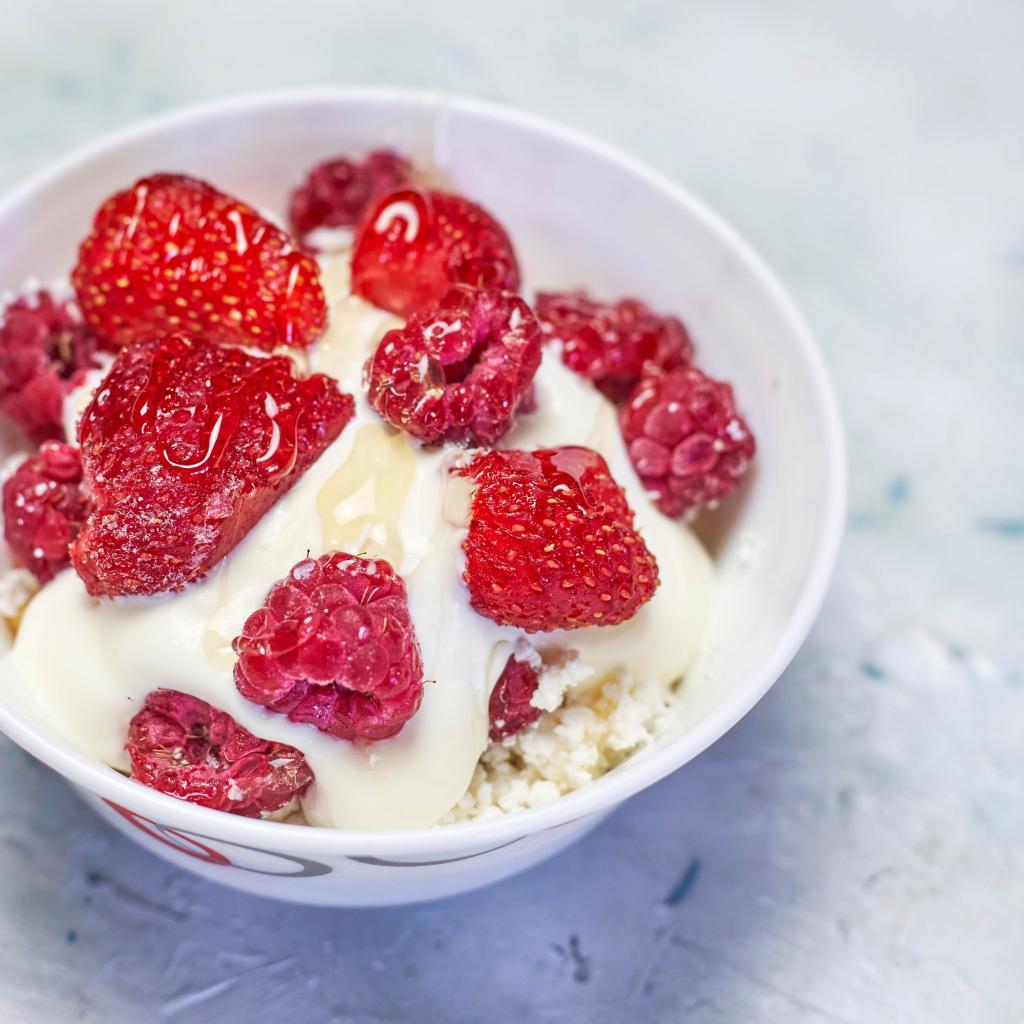 Wallpaper Cottage cheese with sour cream and raspberries