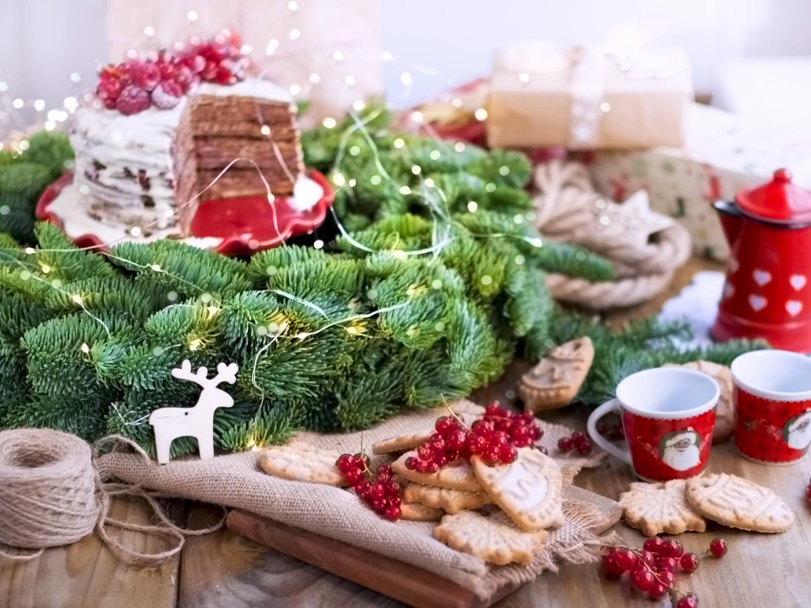 Wallpaper Christmas wreath with cake on the table with cookies