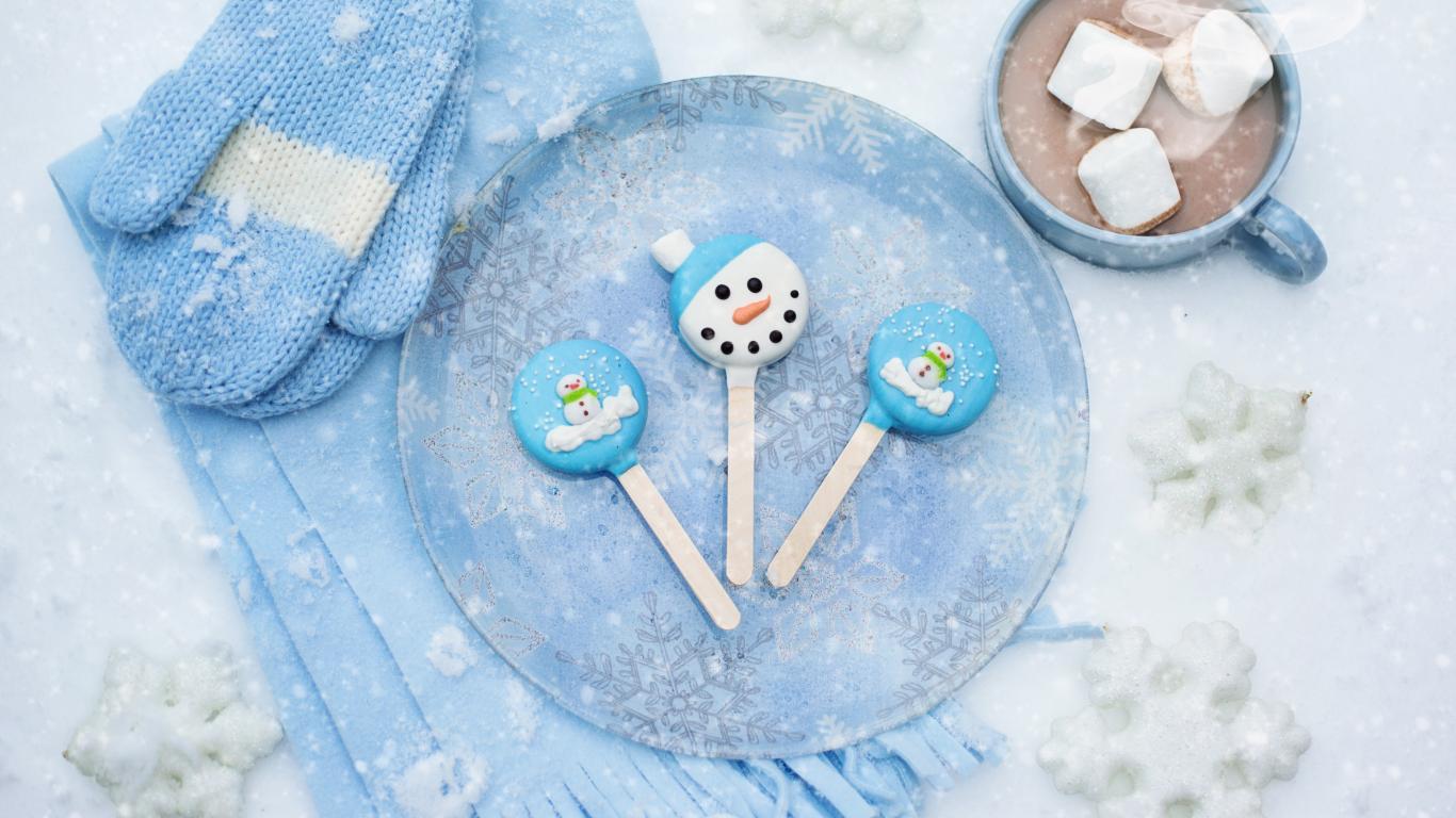 Wallpaper Christmas candies in the snow with cocoa and mittens