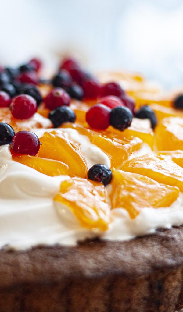 Wallpaper Sweet pancakes with cream, berries of strawberries and blueberries