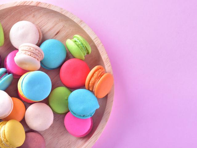 Wallpaper Multicolored pasta cookies on pink background top view
