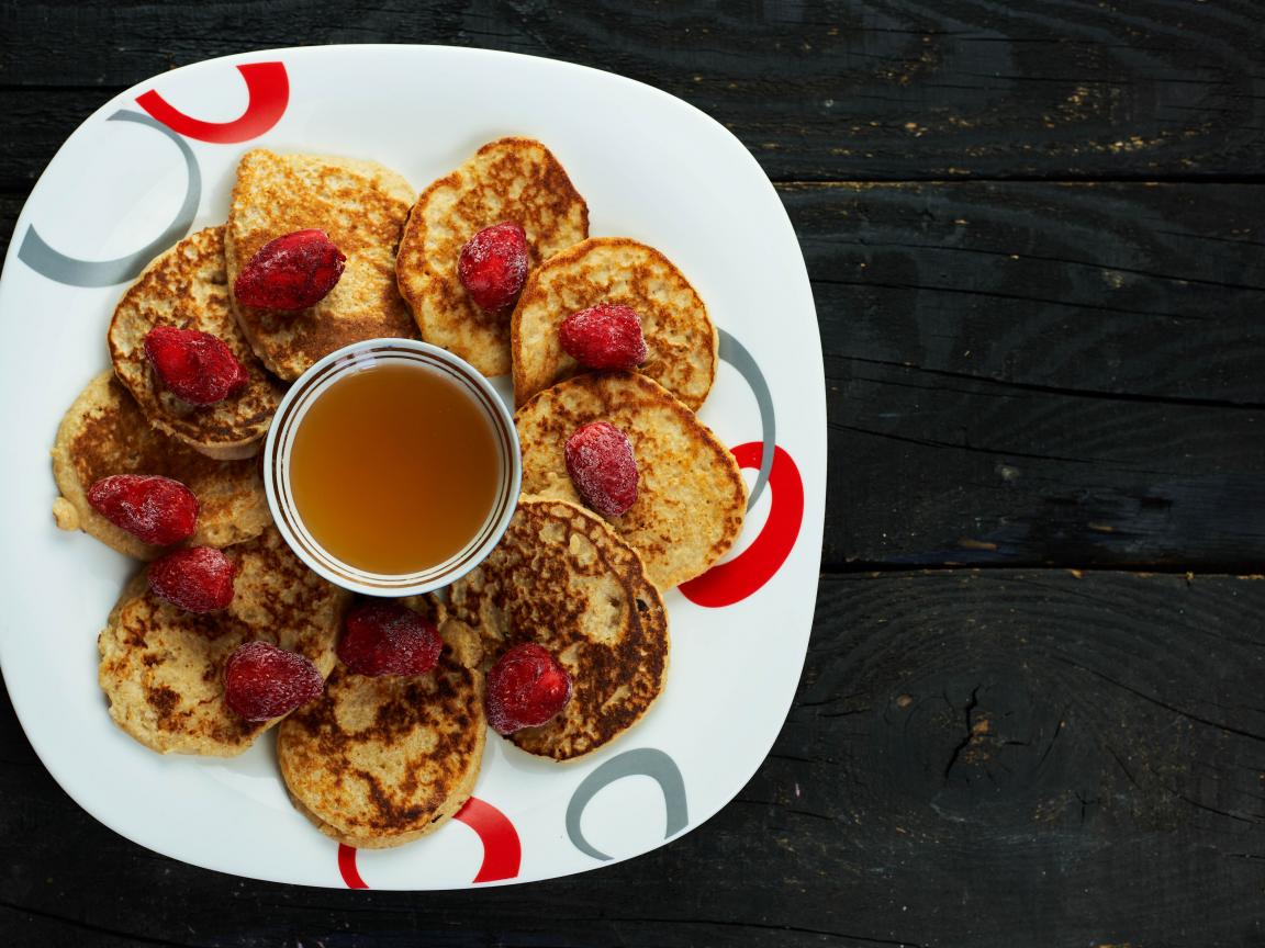 Wallpaper Pancakes on a plate with strawberries and honey