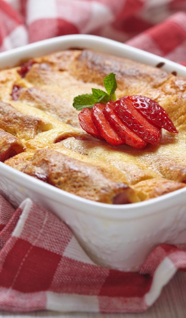 Wallpaper Appetizing fresh pie with strawberries on the table