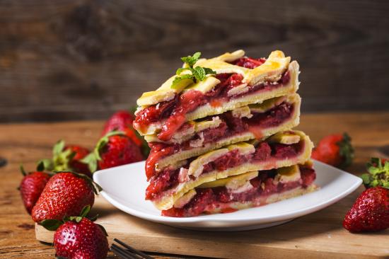 Wallpaper Appetizing piece of cake on a plate with strawberry berries