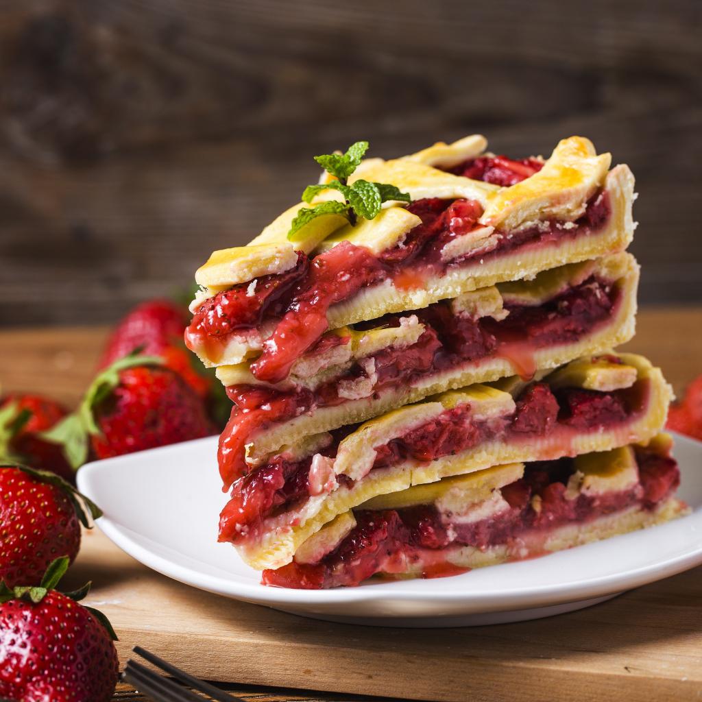 Wallpaper Appetizing piece of cake on a plate with strawberry berries