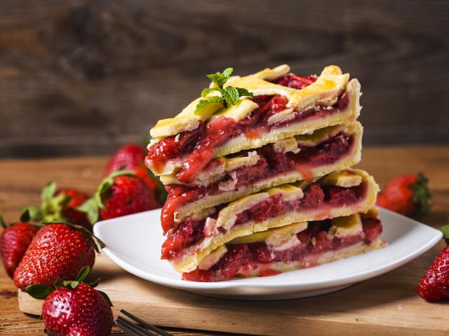 Wallpaper Strawberry pie on a white plate