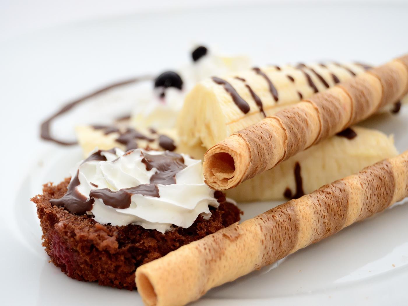 Wallpaper Cake on a plate with banana and sweet tubules