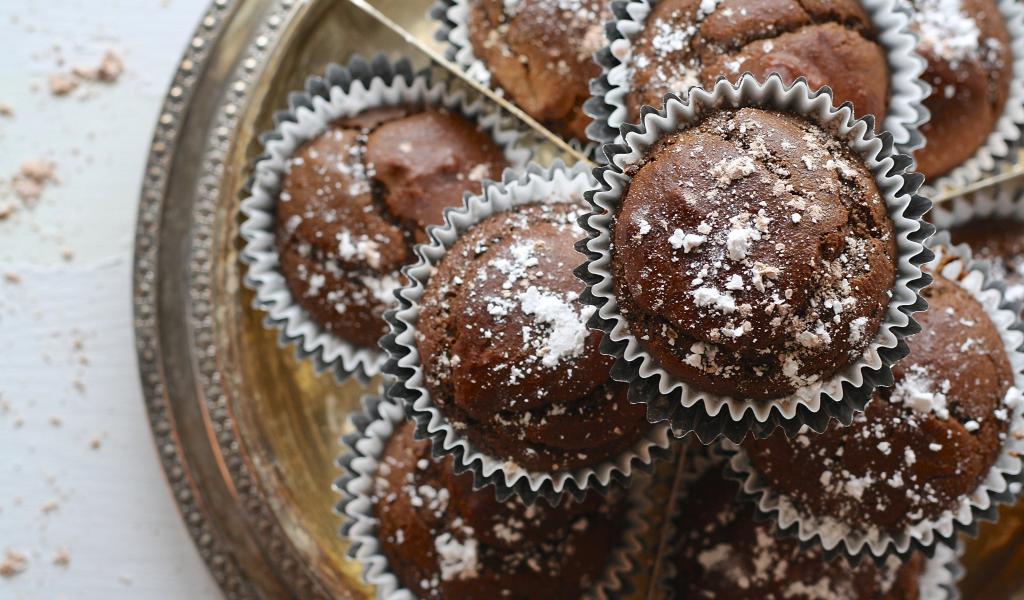 Wallpaper Appetizing muffins with powdered sugar on the table