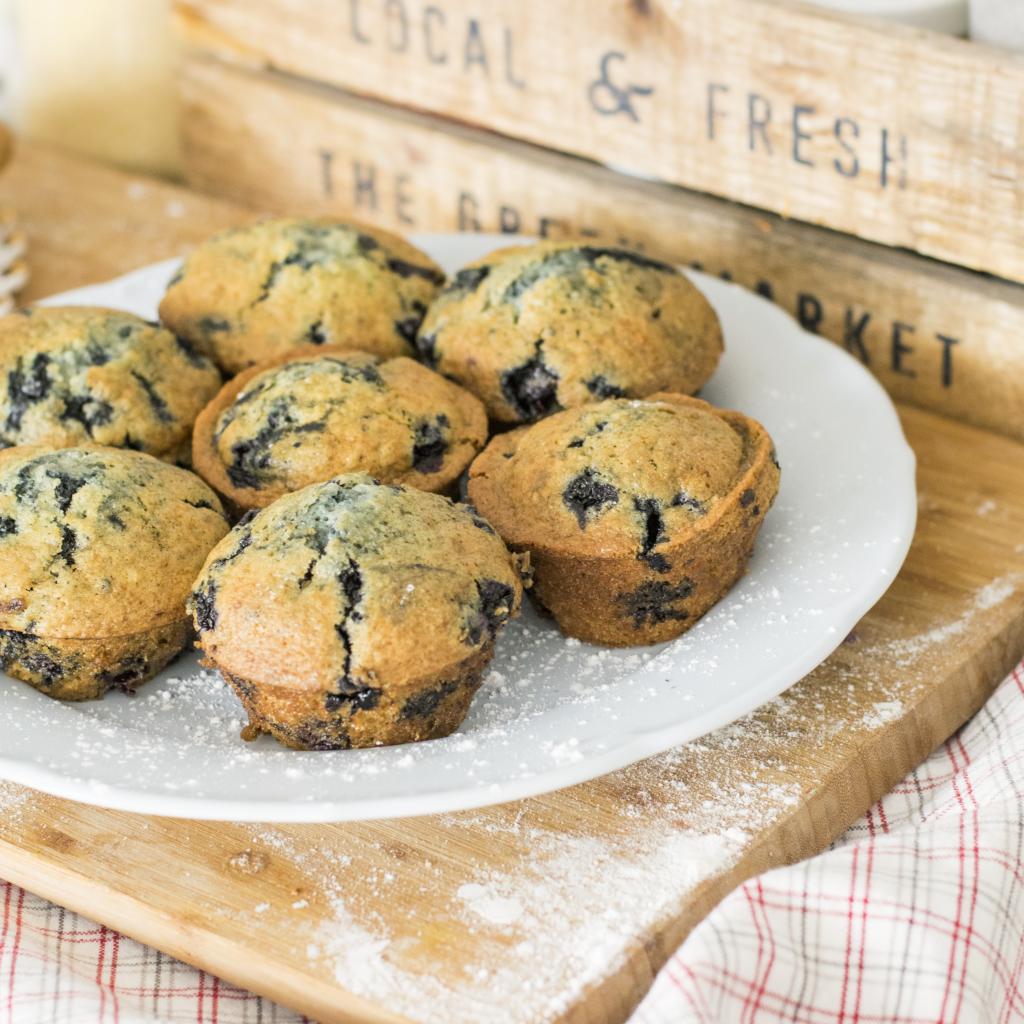 Wallpaper Blueberry muffins on a table with ears of corn and coffee